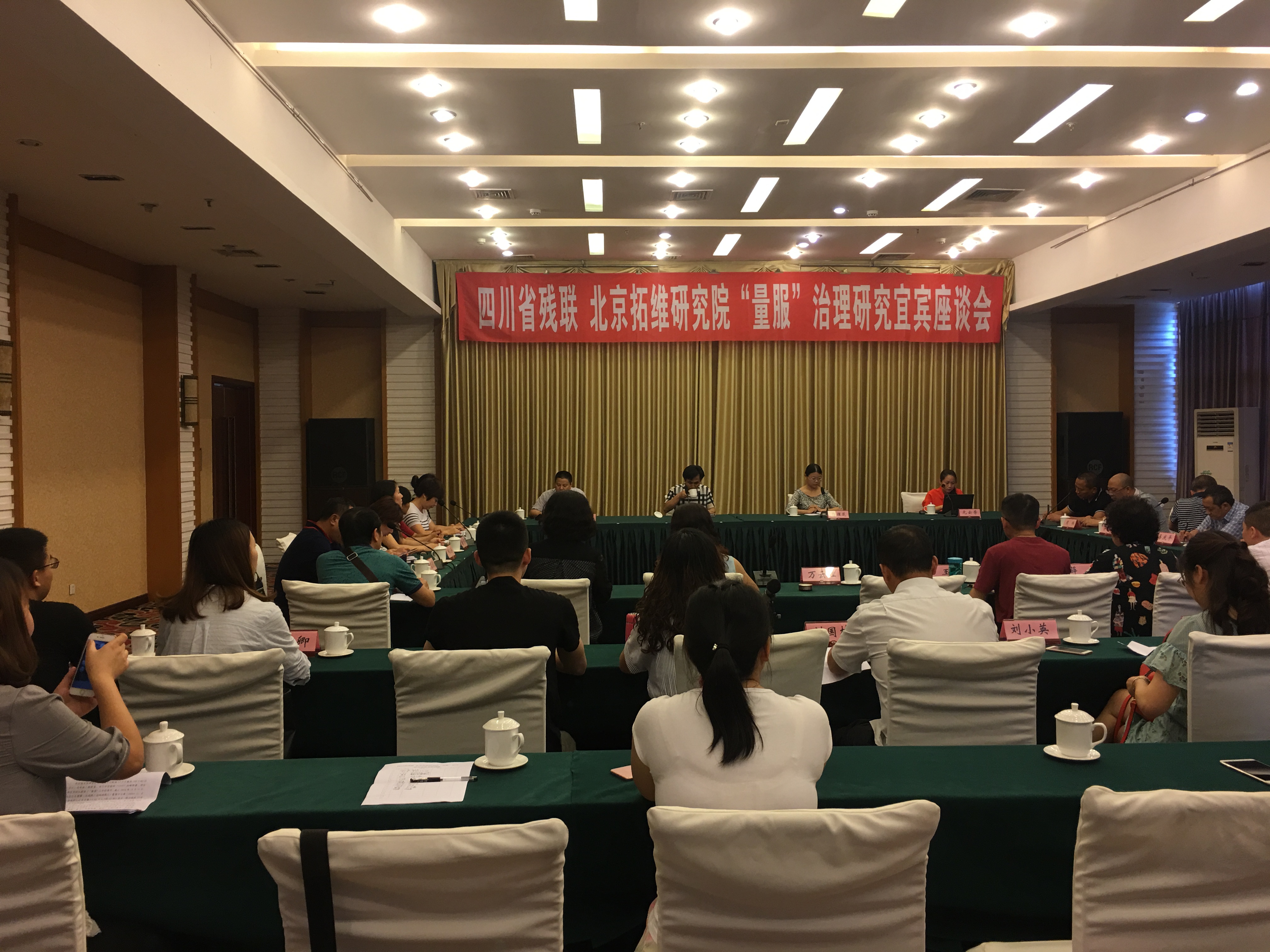 6月21日至28日,拓维智库量服调研组王毅院长、邢煜芝博士等一行三人,就四川省精准扶贫与残联量服治理,至四川德阳、遂宁、广安、巴中、凉山、宜宾、成都等7个地市进行了系列调研;6月29日-7月3日,调研组在省级层面以座谈会、一对一访谈等形式开展了系列访谈座谈活动:其中, 6月29日,在省残联梁峰书记的主持下,调研组与省残联办公室、组联处、维权处、康复处、宣文处、教就处等班子骨干就量服的看法与认识等进行了小范围的座谈;6月30日,调研组先后与省残联马俊副理事长、杨志远副理事长、黄卫德副理事长等就量服的价值进行了一对一访谈交流,并参加了中国地方政府创新奖(政治学者俞可平领衔、由学术机构颁发的奖项)跟踪回访会;7月1日,四川省总工会副主席苗勇,就其在省总工会大群团工作的经验,向调研组就量服的深度推广等方面进行了合理建议;7月2日,拓维智库名誉顾问、中外著名数字化专家、被誉为“电脑将军”的胡永丰将军(正军级)专门来川关注调研情况;7月3日,拓维智库邢煜芝博士在量服讲堂作了题为“四川残联‘量服’模式的国家顶层设计价值研究”的讲座,虽说是讲座,也是调研总结会与成果汇报会,给调研组长达半月的调研画了一个圆满的句号。